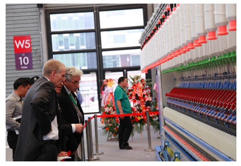 本報(bào)訊(記者 高華斌)本屆展會(huì)上,同和紡機(jī)公司重點(diǎn)展出了TH578J緊密紡自動(dòng)落紗細(xì)紗機(jī)、TH498智能、高速集體落紗粗紗機(jī)等設(shè)備。