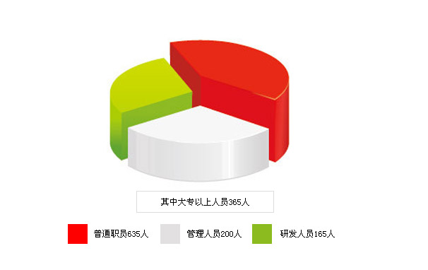 公司現(xiàn)有員工1000多人,具有大專以上學(xué)歷的技術(shù)人員360多人,從事研究開發(fā)人員165人。